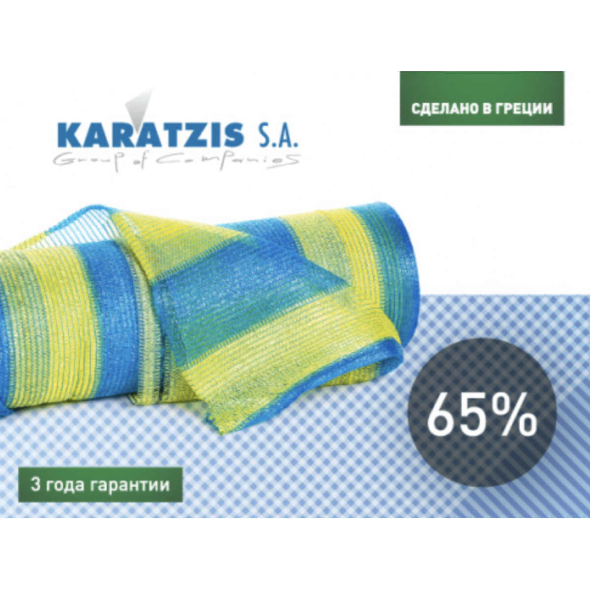 Сітка затіняюча 65% - жовто-блакитна, 50х6 м, KARATZIS, Греція